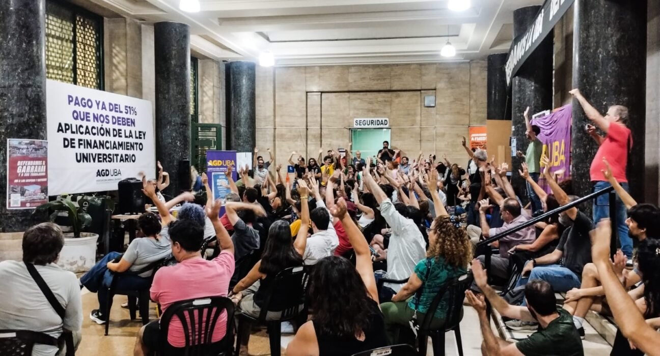 Tras una asamblea, la Asociación Gremial Docente de la UBA (AGD-UBA) informó la medida en sus redes sociales:»No volvemos a las aulas hasta que nos paguen el 51% que nos deben y que se cumpla la ley vigente».